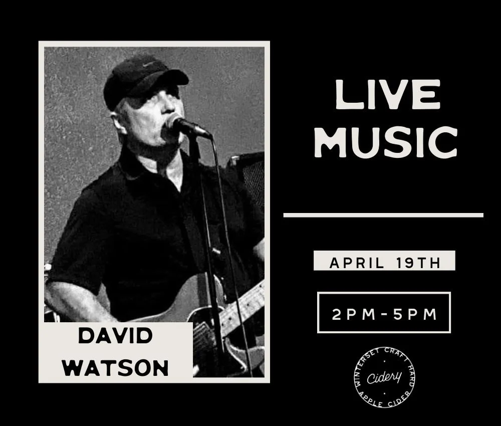 Join us at Winterset Cidery on April 19th from 1–6pm and enjoy live music by David Watson from 2–5pm. Cold cider, great music, and the perfect way to spend your Sunday!